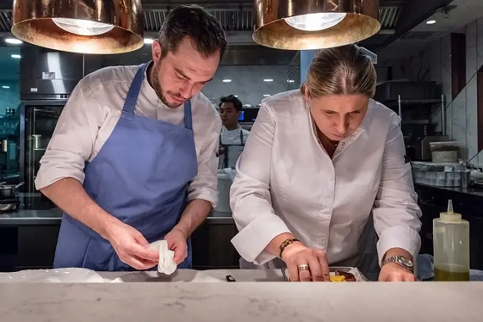 When Resorts World Sentosa told So Chic last month that celebrity French Chef Stéphanie Le Quellec would be cooking for CURATE restaurant in Singapore, we couldn’t resist to go there and meet with her! In collaboration with Chef Benjamin Halat, Chef Le Quellec welcomed us with an exquisite 4- hand menu in an exquisite scenery. Taking 15 minutes of her break, she answered our questions with the franc parler (bluntness) and authenticity that are so special to her. Here’s what she said about her journey as a Chef, her cuisine inspirations, her values, and her family. Of course, we had to ask about her experience at Top Chef (cooking competition aired on TV) and her encounter with French President Emmanuel Macron too!