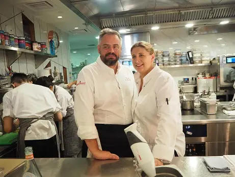 I started my journey at a Hospitality Management School when I was very young (14 years old). In order to learn the art of cooking, I had a lot of internships in small maisons (houses) especially maisons on the French Riviera. At 19 I entered my first big restaurant at the George V in Paris as a kitchen help, then I became demi-chef de partie and chef de partie. It’s at the George V that I met my husband. Then we went on the the French Riviera for the opening of the Four Seasons. I stayed in this restaurant for 6 years as the sous-chef of Philippe Jourdain. In those 6 years we earned 2 Michelin Stars.
