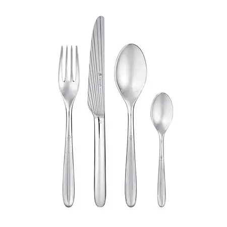 The sleek MOOD opens to reveal a 24-piece silver-plated cutlery set. Each piece is stamped with a subtle linear print, the Christofle hallmark and the iconic Karl Lagerfeld silhouette logo.