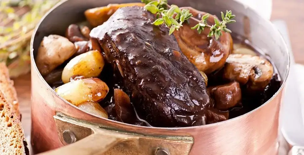 Boeuf bourguignon is a dish originating from Burgundy in France, it is generally eaten on Sundays with the family. It consists of beef simmered in a casserole with red wine and aromatic garnish.