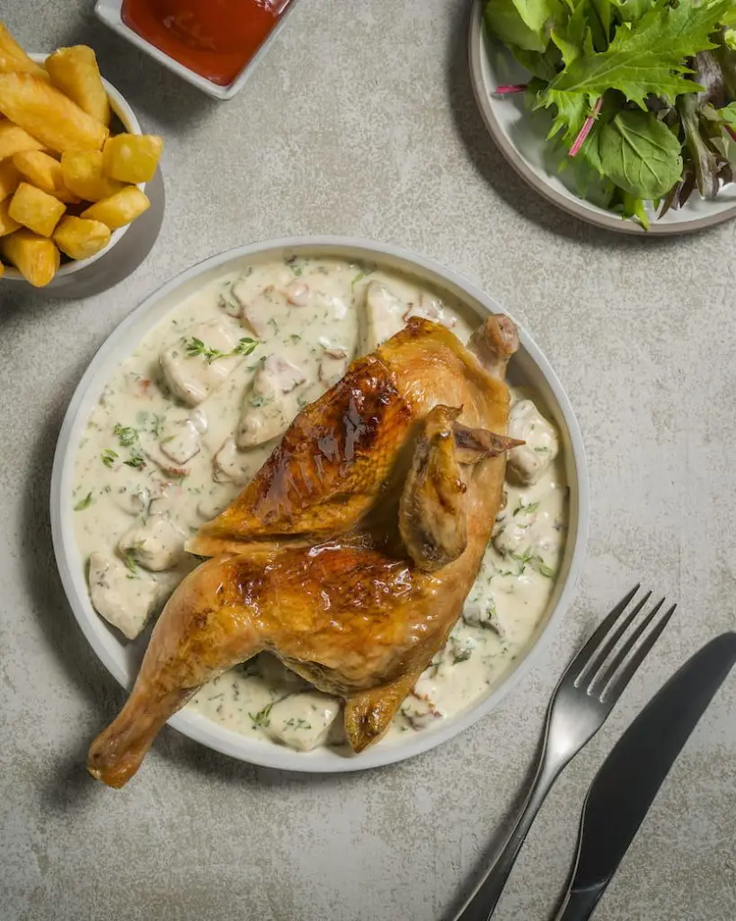 Available from 10.00am – 4.00pm, enjoy an array of tempting French-Belgian style fare such as the Plat du Jour where half of a Roasted Spring Chicken is served with bacon and mushroom sauce, a side of Belgian fries, and garden salad.