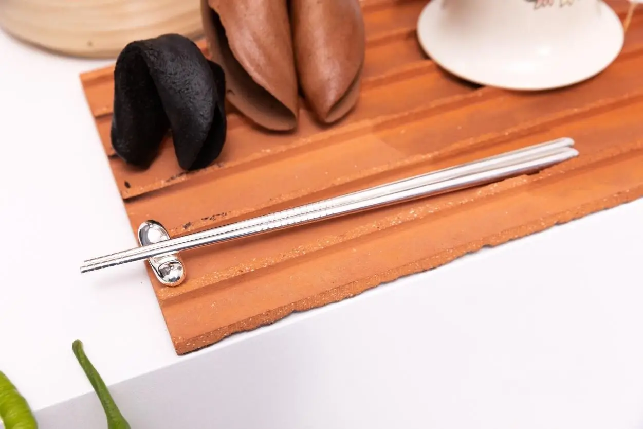 The silver-plated chopsticks – a novelty from Christofle – have two-level ridges for better food grip. Intended to satisfy all tastes and habits, they present a design at the crossroads of styles of all Asian chopsticks.