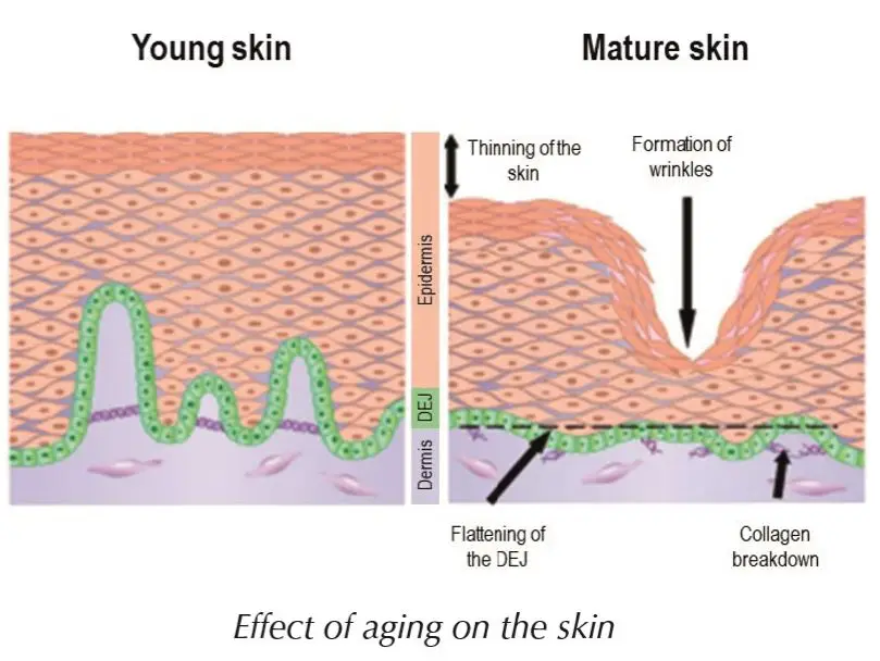 Collagens IV and VII will revitalize and rejuvenate the dermal-epidermal junction. It will thus boost dermal-epidermal exchanges that diminish with age. As for collagens I and III, they increase the density of the dermal mattress and improve the skin’s firmness.