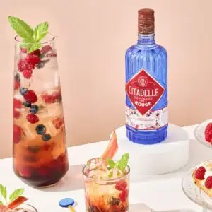 Citadelle Rouge enhances the original dry gin profile with an intense burst of tart berries, balanced by the tangy note of rhubarb. This fruit-forward gin is designed to glow on the palate while remaining crystal clear in the glass, making it a versatile addition to any cocktail.
