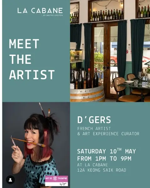 Following the heartfelt response to her solo exhibition during Singapore Art Week, D’Gers returns with a new and intimate showcase—this time, in collaboration with La Cabane by Gaston, a cozy French gem tucked away on Duxton Hill.