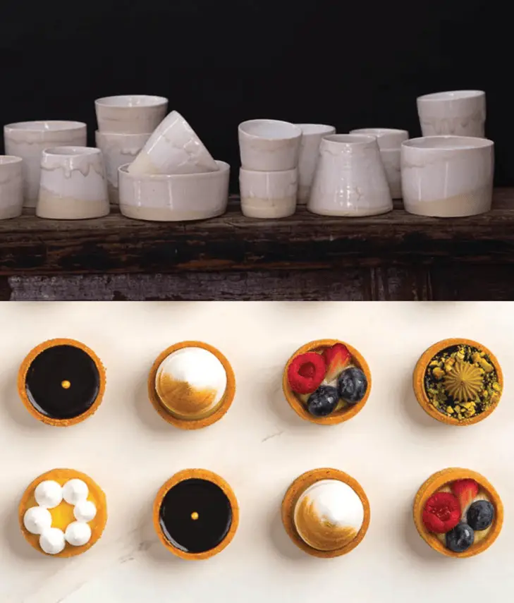 Each guest will be guided by Karine herself to personalize three unique porcelain pieces, combining craftsmanship with artistic expression. During the workshop, guests will indulge in exquisite French pastries by Caro Pâtisserie, paired with a glass of rosé, courtesy of Minuty, for a truly indulgent and elegant experience.