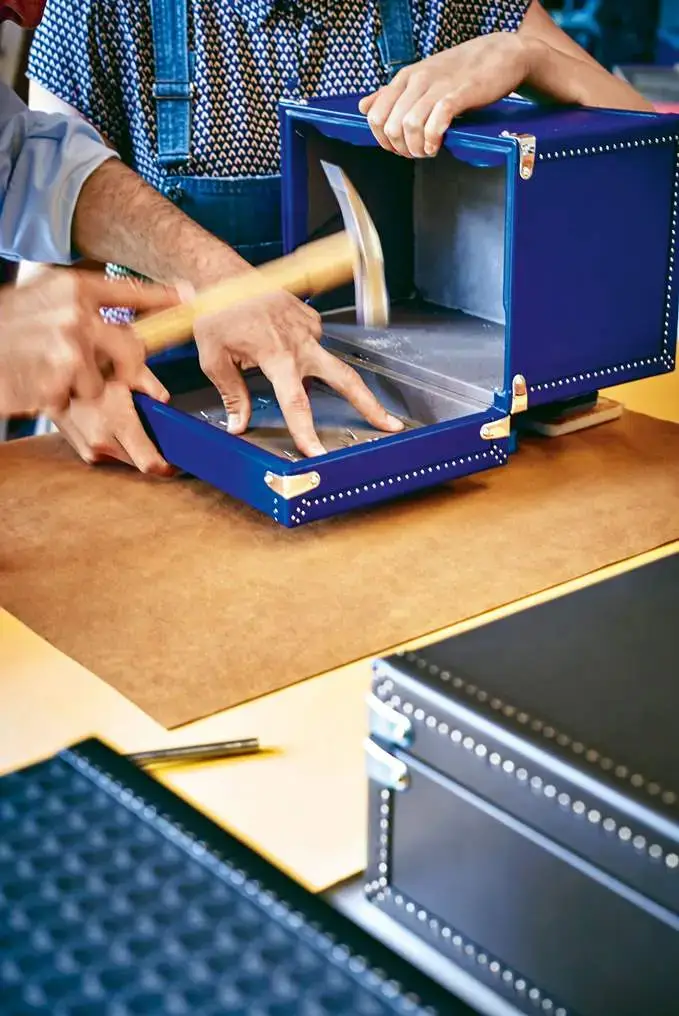 Discover the secret to making your Moynat creation truly yours: indulge in their exclusive personalization services. Elevate your piece to a one-of-a-kind masterpiece by adding hand-painted stripes and initials. Embrace tradition as skilled artists meticulously paint your chosen initials and stripes in a spectrum of vibrant hues, ensuring a personalized touch that’s uniquely yours.